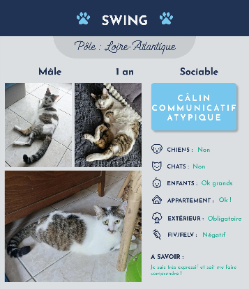Bonjour, je m’appelle Swing, je suis un grand chat d’un peu plus d’un an ![]()