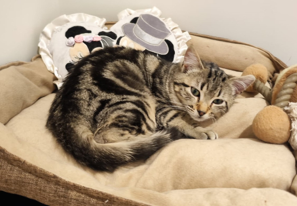 Abeille a été retrouvée avec sa sœur Amande et son frère Athos. Ces 3 petits sauvages ont été recueillis par la fourrière et nous les avons pris en charge au sein de notre association.
