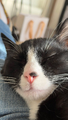 Je suis un bon ronronneur et aime passer mes siestes au côté ou sur les genoux de ma FA