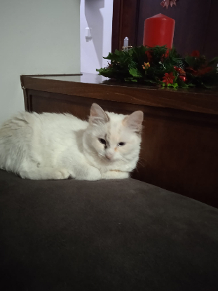 C'est une adorable chatte, très gentille, curieuse et très affectueuse.