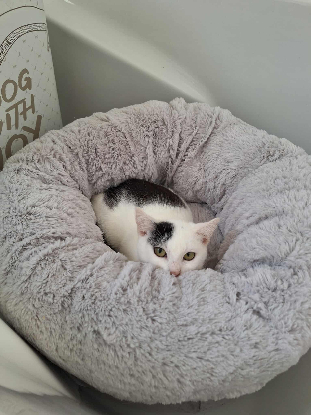 Il est demandé à ce qu’elle vive avec un copain chat pour son bien-être. Très joueuse, la chipie adore embêter les autres chats de la maison.