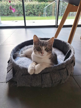 Ajax est jeune et apprend la vie avec des copains humains. Il a fait des progrès et aime sa vie au chaud. Il reste encore un peu timide mais aime se balader dans la maison. Il vous attend pour créer d’autres liens affectifs.