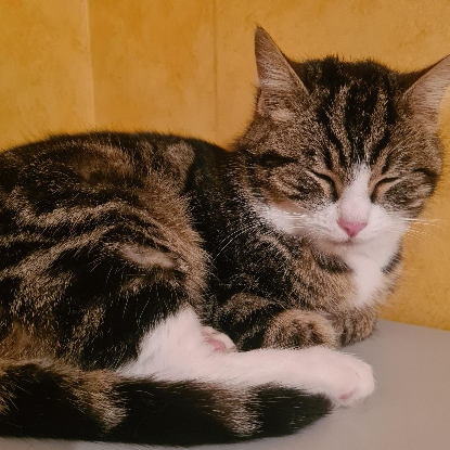 Bianco est à l'aise avec les autres chats et n'a pas peut des chiens.