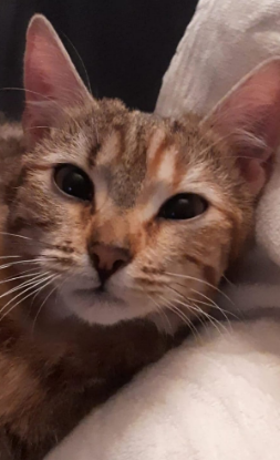 J'ai atterri dans le jardin d'une gentille dame qui m'a nourri et a appelé l'association pour qu'elle me trouve une famille d'accueil. Je suis propre, je suis craintive et une fois en confiance, je suis une machine à ronrons pleine de tendresse.