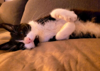 Mon caractère : Je suis un chat très gentil, très câlin. Je suis adorable avec les enfants, je me laisse caresser facilement. J'adore ça. Je suis un petit gourmand, toujours aux aguets du moindre bruit de papier qui pourrait contenir une friandise et aux bonnes odeurs de cuisine. Je suis propre et je joue un peu si le coeur m'en dit. La présence d'un humain m'est indispensable. Je suis un chat calme. Je n'aime pas qu'il y ait trop de mouvements autour de moi. Dans ce cas, je me trouverai un endroit tranquille pour me reposer.
