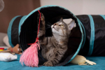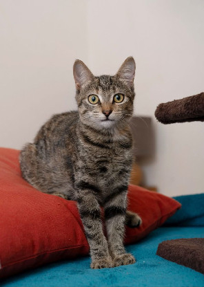 Je suis une chatte très affectueuse et joueuse, toujours prête à m’amuser avec mon arbre à chat, mes petites souris en corde ou encore ma canne à chat ?