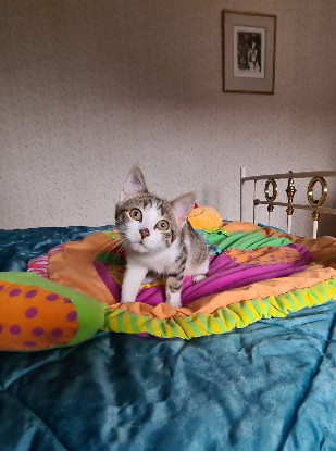 A côté de ça c'est un bébé câlin qui a besoin de tendresse et d'amour; De bras réconfortants pour se blottir et offrir ses ronrons.