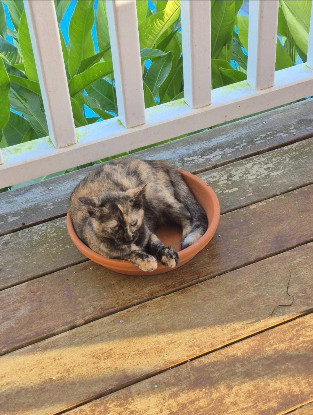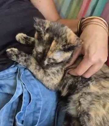 FAKIRA, magnifique femelle écaille de tortue, revient de loin. Sortie de chez une particulière qui distribuait les chatons bien trop jeunes, elle a été sauvée avec son frère Flamiaou pour enfin connaître la sécurité qu'elle mérite.