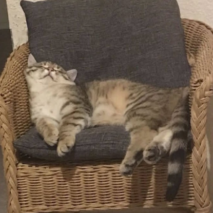 Il aime être près de l’humain (panier, canapé ?️) sans être constamment en demande de caresses.