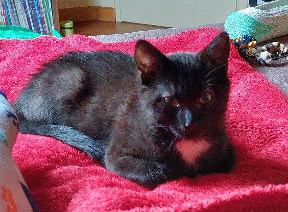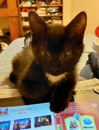 Aujourd’hui, il montre de belles évolutions et révèle pleinement sa personnalité. Il est à la fois joueur et dynamique. D’ailleurs, nous nous demandons même s’il n’a pas des gênes canins tant il aime jouer à la baballe avec son humaine provisoire ! Toutefois, face aux personnes qu’il ne connaît pas, il reste réservé. Il observe d’abord et garde ses distances. Cependant, une fois rassuré, il devient une véritable machine à ronrons et apprécie pleinement les moments de câlins.