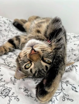 - Miaou ! J’ai tendance à mordiller, mais c’est gentillet ! Et je miaule beaucoup, vous avez dû le remarquer ! Avec moi, communication assurée ! J’exprime mes émotions !