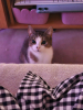 Elle ne se laisse pas encore vraiment toucher, mais elle aime venir se poser à côté de son humain pour dormir ou faire sa toilette.