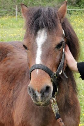 Perle est une gentille ponette très douce et curieuse. Câline et gourmande, elle porte parfois un panier pour limiter la quantité d’herbe à ingérer. Facile aux soins, elle reste adorable pour toute intervention. Elle donne facilement les pieds et se laisse manipuler sans broncher. Elle peut parfois manquer de confiance et a besoin d’un peu d’espace dans ces moments-là. Perle n’en est pas moins une belle ponette qui n’a pas peur des clôtures électriques, elle apprécie découvrir les environs ! Elle aura besoin d’un peu de temps pour avoir pleinement confiance et fera le bonheur d’une famille aimante. Venez la rencontrer dans sa famille d’accueil !