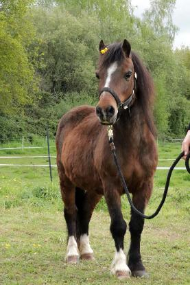 Vaccinée et déparasitée. Sujette aux fourbures, à surveiller.