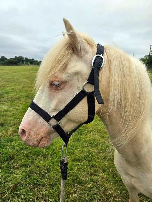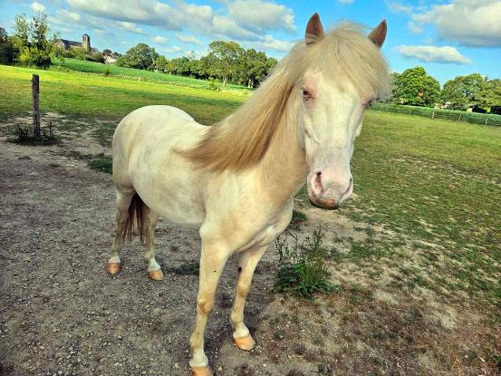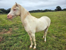 FALCO, magnifique poney crème aux yeux bleus à adopter via l'association UMA (44440 Joué sur Erdre)