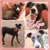 SATYA est arrivée très craintive au refuge. Elle a fait beaucoup de progrès et sait aujourd'hui demander des caresses. Il ne faut cependant pas oublier qu'elle est un abandon de la chasse et qu'elle a sûrement vécu des choses terribles.