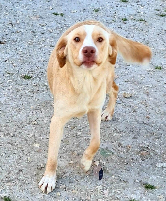 Ce chien croisé labrador, de gabarit moyen, est joueur, affectueux, très sociable avec les humains, les enfants et avec ses congénères. Pour les chats, un test sera fait pour toute demande sérieuse.