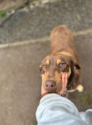 Ambra a été retrouvée errante sur le bord de la route, elle boitait de la patte arrière. Un sauveteur l'a aperçu et a pu la mettre en sécurité en famille d'accueil. Elle vit actuellement avec 5 autres chiens à l'extérieur de ma maison. Elle attend désormais sa famille pour la vie.