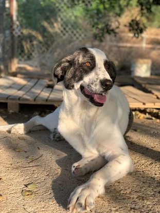Son histoire : Les bénévoles du refuge ont été prévenus qu'une mastine avait été vue avec une patte amputée. Elle marchait le long de l'accotement de la route. Quand les bénévoles sont arrivés, elle traversait un pont et en les voyant, Fanta s'est jetée par dessus la berge, jusqu'à la rivière en contrebas. Les bénévoles ont pu l'attraper grâce à sa patte valide, qui était coincée entre deux grosses pierres dans la rivière. Nous ne savons pas combien de temps elle a erré ainsi, ni ce qui lui est arrivé, mais il est probable qu'elle se soit prise dans un piège à renard. Aujourd'hui, Fanta va mieux. Elle a été placé en famille d'accueil pour se refaire une santé, et elle attend maintenant sa famille pour la vie au refuge.