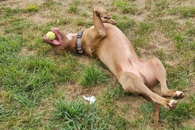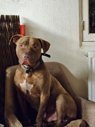 Denver est un beau chien de type staffordshire terrier decatégorisé (diagnose faite).Il mesure 58 cm au garrot et pèse 38 kg.