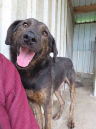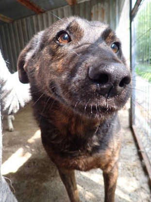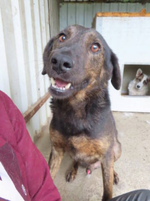 Caractère : Arrivé agressif, est maintenant très sociable avec Emilie, l'éducatrice canine du refuge, donc possiblement peur des hommes