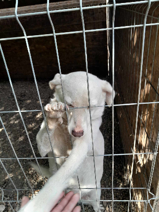 Son histoire : Blue-Eyes a été abandonnée devant les portes du refuge des Innocents pendant l'été 2021. Elle était très jeune, Maria et Ferenc l'ont nourri au biberon et la puce a pu grandir normalement