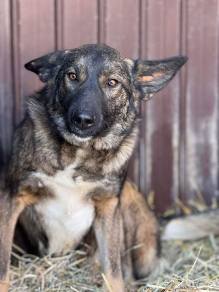 Ashka est une superbe femelle de 3,5 - 4 ans pour 25-28kg environ : un beau pelage, une silhouette élancée, un museau pointu et de superbes oreilles de chauve souris ???