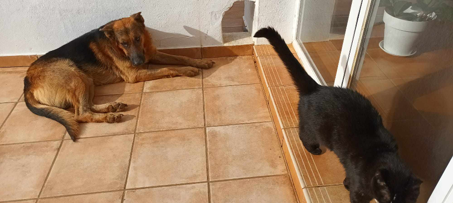 Il est actuellement en accueil, en Espagne chez notre amie Isabela qui l'a récupéré il y a quelques jours, chez des voisins, alors qu'il vivait en extérieur , enfermé dans une grande cage et n'était pas soigné.