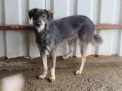 Caractère : Craintive. Elle ne pourra progresser que dans une famille, au refuge il y a trop de chiens, trop de bruit pour qu'elle prenne confiance en elle et vienne demander des caresses.