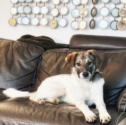 Sunn est gourmande, elle ne fait pas de protection de ressources avec l’autre chienne de la maison. Elle est joueuse ! Sunn et la chienne de sa famille d’accueil passent vraiment beaucoup de temps à jouer.