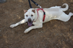 Une fois passées ses 10 minutes de folie, il se montre plus calme et va chercher de l'attention et des caresses auprès des bénévoles.
