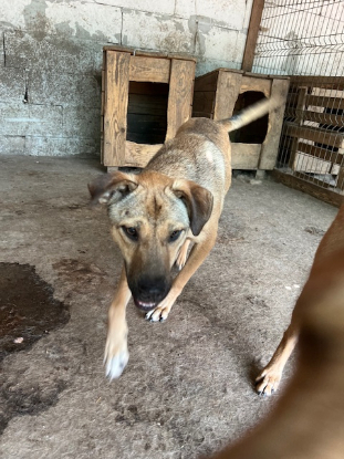 Gotham a vécu en liberté au refuge lorsqu'il était chiot. Il vivait en meute avant d'être mis en box avec son frère Tismé. Il est assez timide et sur la réserve. Malgré tout, il est gourmand, et vient aux friandises. Il a bien évolué depuis juin 2023, où il se laissait caresser. Maintenant, avril 2024, il apprécie nos visites, demande des caresses et il reste près de nous.