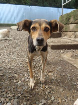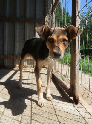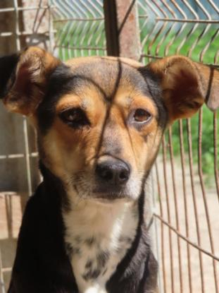 Caractère : craintive à son arrivée. Elle ne pourra progresser que dans une famille, au refuge il y a trop de chiens, trop de bruit pour qu'elle prenne confiance en elle et vienne demander des caresses.