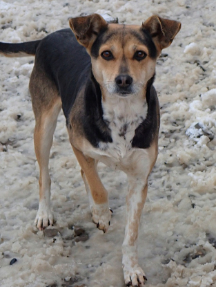 Née en décembre 2022 (date estimée approximative), elle est de taille moyenne (environ 15 kg).