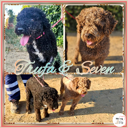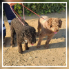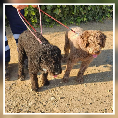 SEVEN et TRUFA sont deux chiens d'eau espagnol qui ont toujours vécu en famille, ensemble.