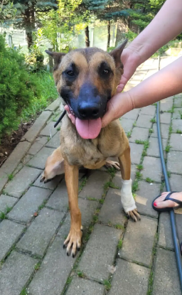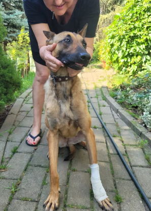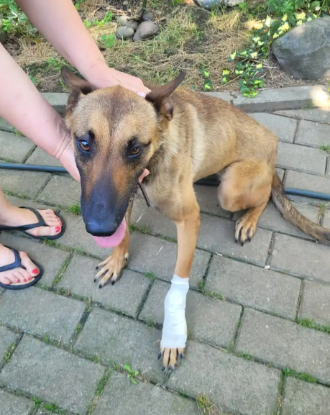 Malina a été repérée dans un parking, abandonnée, maigre et blessée à une patte. Elle avait besoin de soins et elle vit depuis en famille d’accueil avec une dizaine de chiens.