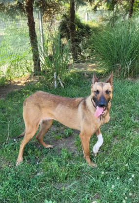 Malina est énergique et athlétique, elle aura besoin d’une famille active qui saura combler ses besoins. Douce et affectueuse, elle recherche l’affection humaine et les caresses. Elle s’entend bien avec les autres chiens mais, le courant avec les chats ne passe pas !