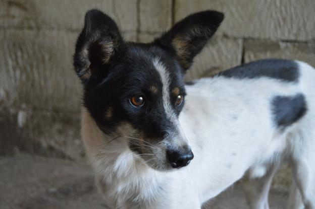 Stinger est un chien timide, il commence à sortir de sa niche lors des voyages de nos bénévoles au refuge. il s'approche pour prendre des friandises. Il accepte le contact mais reste sans aucune réaction.
