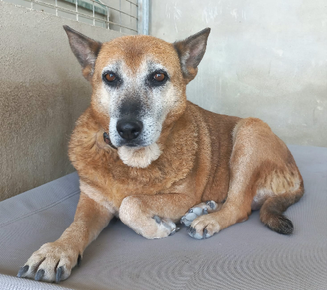 GORDA est arrivée au refuge en mars 2024 et a été testee positive à la leishmaniose.