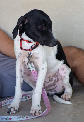 mai Nick est un mâle croisé de Braque et Bodeguero né en Mai 2024 et arrivé au refuge en Juillet 2024. Il sera probablement un chien de taille moyenne, pesant aux alentours de 15 Kg.