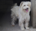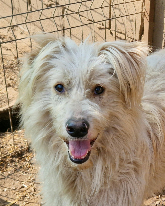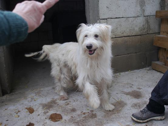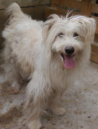 Kinou vivait à l'attache dans un ancien refuge. C'est un chien gentil et affectueux mais il reste sur la réserve avec les inconnus, il a du subir des violences, son oreille a été coupée.
