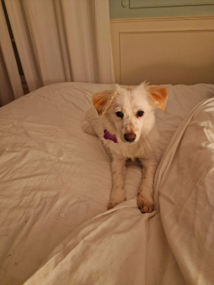 Volga est arrivée dans sa famille d'accueil le 14/12/2024, elle s'entend avec ses congénères, elle ne s'intéresse pas au chat sauf si ce dernier se met à courir elle fait de même.