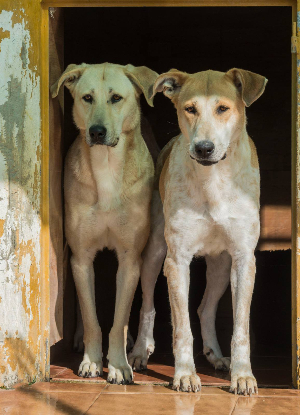 -Nous sommes 2 femelles croisées mastin espagnol et probablement labrador.
