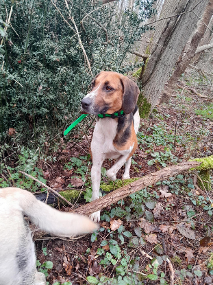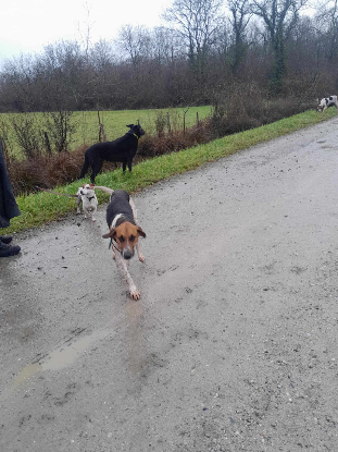 A l'adoption TIMEA Anglo français de petite vènerie née le 01/06/22 sortie de fourrière le 20 décembre