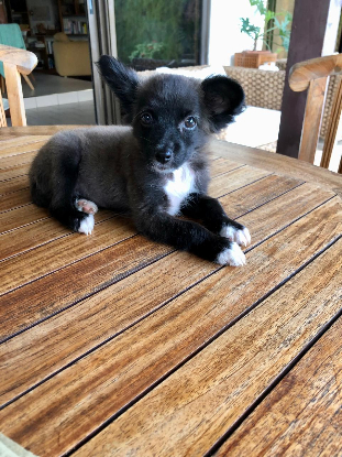 Ce petit chien a été retrouvé abandonné dans un carton au bord d’une route de Tahiti. Ils étaient six, mais malheureusement, sous la chaleur accablante, quatre n’ont pas survécu.
