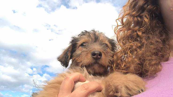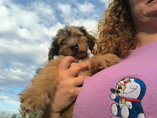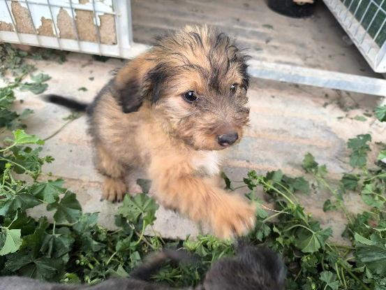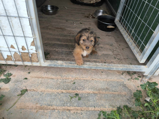 Olga est un chiot femelle croisée yorkshire née en février 2025 et arrivée au refuge en avril. Elle sera de taille petite une fois adulte, moins de 10 kg selon les parents.