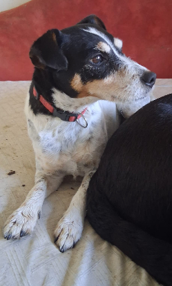 Nous vous présentons Joséphine, une chienne croisee jack russell de 8-10 ans à l'adoption.