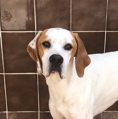 Aladin est un mâle Pointer né en Janvier 2024 et arrivé au refuge en Août 2024. Il pèse 19 kg et mesure 58 cm au garrot.