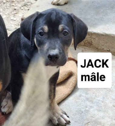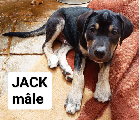 3) Un mâle noir croisé mastin et border collie (environ 2 mois et demi / 3 mois) trouver attaché à des poubelles, en pleine chaleur, sans eau, ni nourriture