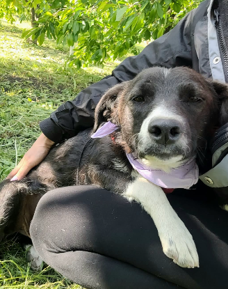 Eria a été abandonnée près d’un aéroport alors qu’elle était gestante, livrée à elle-même pour survivre. Elle a donné naissance à sept chiots, dont quatre qui ont survécu. Malgré le traumatisme et l’abandon qu’elle a vécus, Eria est restée sereine et pleine de confiance.